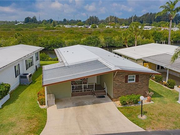 WATERFRONT HOME IN THE PET FRIENDLY SECTION OF LAZY RIVER VILLAGE. Welcome to one of the most impressive parks in Southwest Florida: Lazy River Village, a 55+ community. This 2 bedroom split floor plan home represents a great opportunity to own a WATERFRONT property nestled along the Myakka River. ***Furnishings included, see attachment.*** The WATERFRONT views and SUNSETS are yours for the taking. Living in Lazy River Village is all about the lifestyle. The amenities for this wonderful WATERFRONT park are some of the best, if not *the* best, in all of Southwest Florida. A low monthly maintenance fee of $163 includes lawn care, cable tv, and all these amenities: pool, tennis, pickle ball, shuffleboard, bocce ball, and many activity/social clubs to join. Why, they even have a professional wood working shop you can join!! Pontoon boating is a favorite of many of the residents. Enjoy the abundance of Florida wildlife right in your own WATERFRONT backyard. Cranes, otters, manatees, dolphins, and, yes, a few reptiles (just don't feed them and you'll be fine!) share this space so you will be immersed in Mother Nature. **Don't miss viewing the inside 3D tour along with an aerial tour.** Welcome to Lazy River!!!!