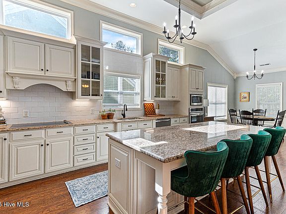 Gym*Tennis Courts*Pickle Ball Courts*Jack Nicklaus Design Golf Course*Marble Open Shower*8 Ft Granite Island*14 Ft Ceilings*8 Foot Walk in Pantry*Tons of Natural Light Welcome to your dream home! This stunning 3-bedroom, 2.5 bathroom ranch perfectly blends elegance, comfort, and functionality. Step inside and experience the majestic beauty of this open-concept layout featuring 14-foot ceilings, rich crown molding, wainscoting, and an exquisite marble fireplace the perfect centerpiece for cozy evenings. The gourmet kitchen is a showstopper- featuring custom cabinetry, an 8-foot granite island, and an 8-foot walk-in pantry ideal for the home chef! Retreat to the oversized master suite, where luxury and serenity await. Enjoy the airy space, abundant natural light, and elegant finishes. The spa-inspired master bath offers a marble open shower, a massive soaking tub, and an expansive walk-in closet with a custom organization system that's ready for your personal touch! On the opposite side of the home, you'll find two spacious bedrooms, each with large walk-in closets, a large laundry room with premium storage, and 1 full and half bathrooms! Grab your favorite glass of wine or cup of Joe and step outside to your covered back porch perfect for morning coffee or evening sunsets. The patio area provides an inviting space for grilling, entertaining, or simply relaxing! Nestled on a peaceful horseshoe loop, this property offers a perfect balance of community and privacy great for walks, playtime, or chatting with neighbors. Enjoy access to an incredible array of resort-style amenities, including a gym, spa-style swimming pool, tennis and pickleball courts, and a golf course. Located conveniently near shopping, across from an award-winning charter school, and just a short commute to Fort Bragg, Camp Mackall, and Pope Army Airfield, this home truly has it all!