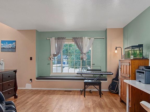 This impressive two-story home is situated in the desirable Regency Park area. The main level features a spacious living room with vaulted ceilings, large windows that flood the space with natural light, and a cozy gas fireplace. The expansive kitchen boasts beautiful tile work, a huge center island, and adjoins a formal dining room. Additionally, there's another versatile living area perfect for a game room, den, playroom, or office. Conveniently located on this level are a half bath and a laundry room. Upstairs, you'll find a generously sized master suite complete with an attached five-piece bath and a walk-in closet. Down the hall are two more bedrooms and a full bath. The basement includes a finished bedroom, just waiting for the new owner to choose flooring plus 2 large unfinished areas for expansion room. This home comes with paid-off solar panels, a tankless water heater, and a radon system already installed, offering substantial savings and peace of mind. Outside, the backyard is expansive with two separate areas ideal for pets, entertaining, gardening, or any other activities you desire. One side features a double gate, making parking your recreational vehicles effortless. The property also includes a chicken coop and chickens, enhancing the appeal of this wonderful home.