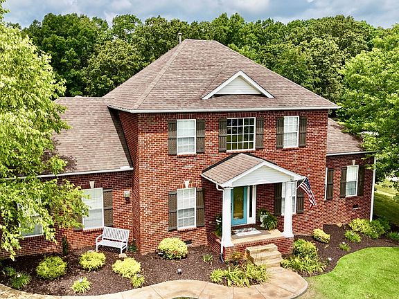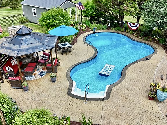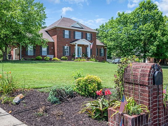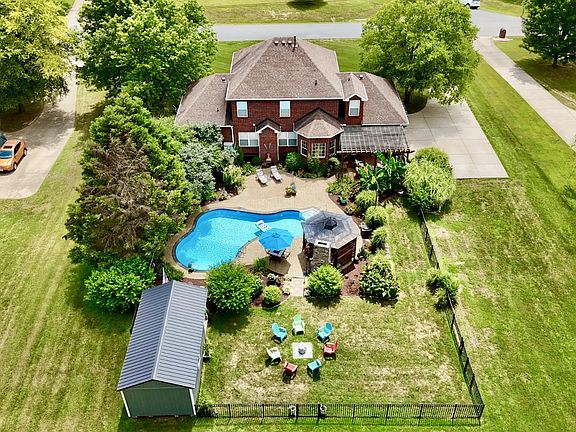 This traditional brick home sits on just over one acre and backs up to beautiful farmland. Once inside the two-story foyer, you'll immediately notice the beautiful hardwood flooring. The main floor offers a formal dining room, a comfortable living room with gas fireplace, an eat-in kitchen, an abundance of cabinets, large walk-in pantry, primary bedroom suite, and home office. Upstairs you'll find three bedrooms with spacious closets, a full bath, a bonus room with office area and a huge walk-in attic. The true magic happens when you step out the back door. This home is business in the front and ready for a party in the back! A beautiful, custom wood pergola covers the back patio and is surrounded by tropical plants and flowers. The inground pool with fountain is the focal point of the fenced-in garden oasis. Cozy up in the winter months under the gazebo with a roaring fire in the custom stone fireplace. Welcome home!!!