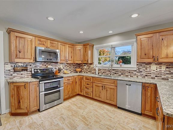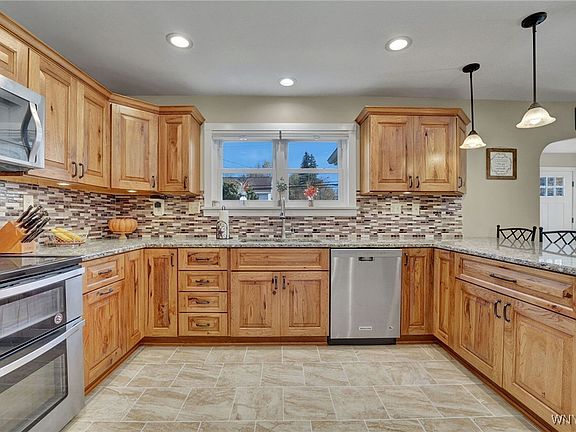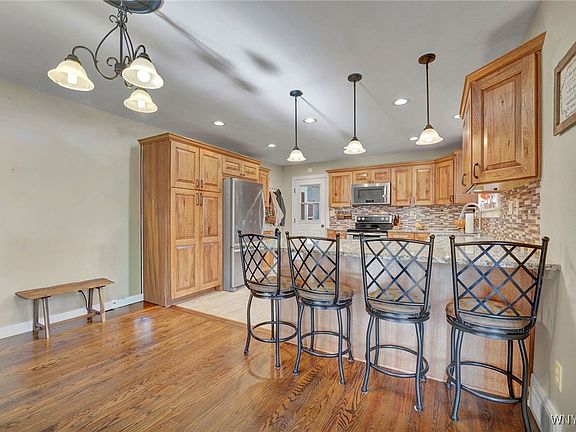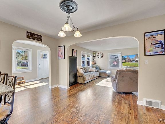 Charming Brick Cape Cod in the heart of Arcade village- Step inside to discover a warm and inviting interior featuring a newer custom kitchen, quality hardwood flooring, open dining/living room, family room/sunroom, full bath on first floor and full bath on second floor.