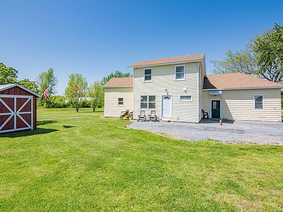 Back on market due to buyers financing: Vintage former train station with additions, this home has 14 foot ceilings with original wood shiplap. Huge west-facing windows in the kitchen allow light to pour in. A large primary bedroom with ensuite full bath, along with another bedroom and a second bath w/ laundry, large living and dining spaces and lots of storage fill out the first floor. The second floor has another oversized bedroom with walk-in closet and storage spaces that have potential for renovation. Fresh paint, interior renovation, new direct vent heating, new roof in 2019, a mound system septic in 2010 and a huge light filled and landscaped yard. A thorough renovation with modern conveniences and new systems have kept the vintage charm of this home. Steps from the elementary school and the conveniences of Ferrisburgh Center, close to the lake, 1.5 acres, this home has it all.