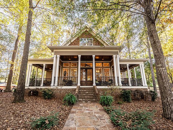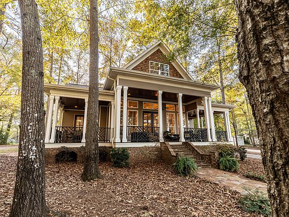 Stunning lakefront home comes furnished providing all the luxuries for a perfect lake experience. The main level features a custom kitchen with an island, hardwood and tile flooring, 12-foot ceilings, an electric fireplace, and surround sound. The master bedroom opens to a semi-private back porch and the en suite is spectacular! Additionally, the sunroom and wrap around porch offers room for everyone. Upstairs are 2 oversized bedrooms, a full bath, and the cutest little hideaway for additional sleeping. Outside, enjoy the private backyard with fire pit and landscape lighting, the outdoor BBQ shelter, and the fire pit. A single stall boathouse with lift included 2 jet ski lifts, Trex decking, and 10-foot deep water!!
