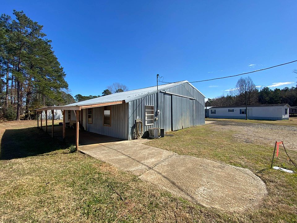PERFECT SET UP FOR RV !!!! This metal storage building could be just the solution for you. There is one private room, 1/2 bath and kitchen / living area that could be made into a perfect little weekend camp. There is also a large enclosed area for storing boats, Rvs, Lake Toys, etc. There are two large roll up doors and well as doors that open for pass thru from back to front. Water, sewer and electricity already in place.