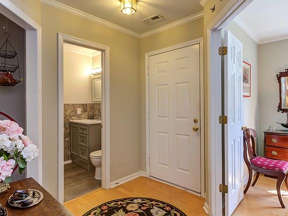 A WOODCROFT GEM! Nestled in the heart of Woodcroft, with its spectacular walking trails, and proximity to shopping & dining, this 3 BR home offers an oasis of tasteful charm.The floor plan provides options for various living needs w/ a main floor study & a full bath. A spacious living room opens to dining room & deck; woodburning fireplace & bright hardwoods induce a feeling of warmth. Renovations & upgrades abound, beginning w a total redo of the kitchen in 2015 w new cabinets, granite counters & SS appliances. HVAC was replaced & upgraded. Prairie stye windows have been installed throughout. Upstairs are 3 BR's, w the primary BR featuring a vaulted ceiling & a generous closet. Primary BR, hall & stairs were recarpeted in 2024. All bathrooms have been renovated. Dominating the lower level is a spacious family room w built-in cabinetry that includes a sink for easy entertaining. A work-out area adjoins w access to the backyard. Meticulously maintained, this charming home offers a haven of comfort and serenity, yet is convenient to everything local - schools, shopping, Duke, UNC and the Research Triangle.
