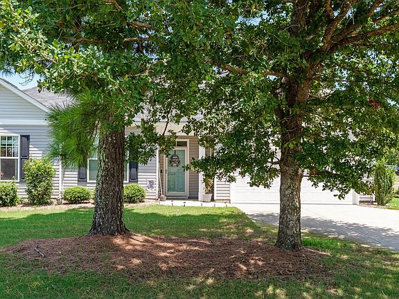 Step into this thoughtfully designed home, where separate living and dining areas provide distinct spaces for relaxation and entertaining. The bedroomns are off to the side which keeps your privacy in check while also having everything on one level to offer comfort and convenience. Two secondary bedrooms share a well-appointed hall bath, while the owner's suite is a true sanctuary. Mornings are made effortless with a double vanity and the generous 52-inch walk-in shower provides ample room for a refreshing start to your day. Finally, a large walk-in closet offers unparalleled storage, meticulously organized for every season. Beyond the interior, this home extends its charm to it 0.63 acre lot. Imagine enjoying the lush lawn, the practicality of a large shed, and endless summer fun with an above-ground pool. A spacious covered back patio provides the perfect setting for outdoor dining and relaxation, making this home an entertainer's dream.