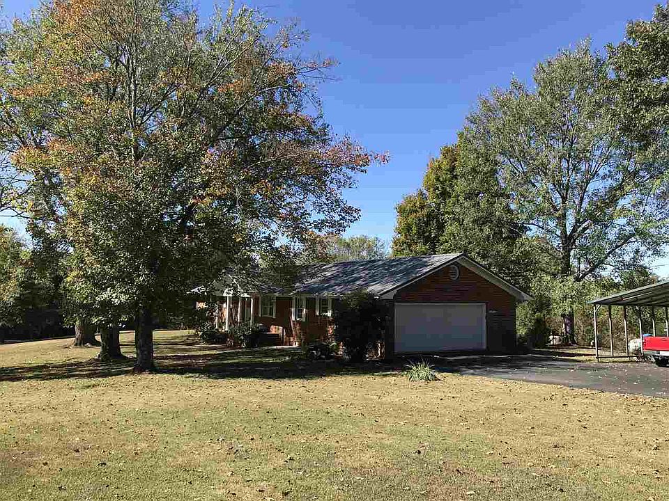 Country quiet with couple of acres. Three bedrooms,two full baths in all brick ranch home. Attached double garage with detached large carport. Large two-story storage/workshop. Home is on public water, but has a well that could be re-opened. Asphalt driveway, metal roof, almost two landscaped acres with beautiful shade trees. Two propane gas fireplaces. All kitchen appliances remain. Excellently maintained property. Selected pieces of furniture can be purchased: Dining room table (6 seats) and the matching hutch (see photos 19 & 27 attached), $600.00 REDUCED $222,500