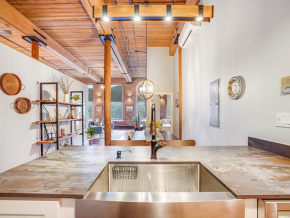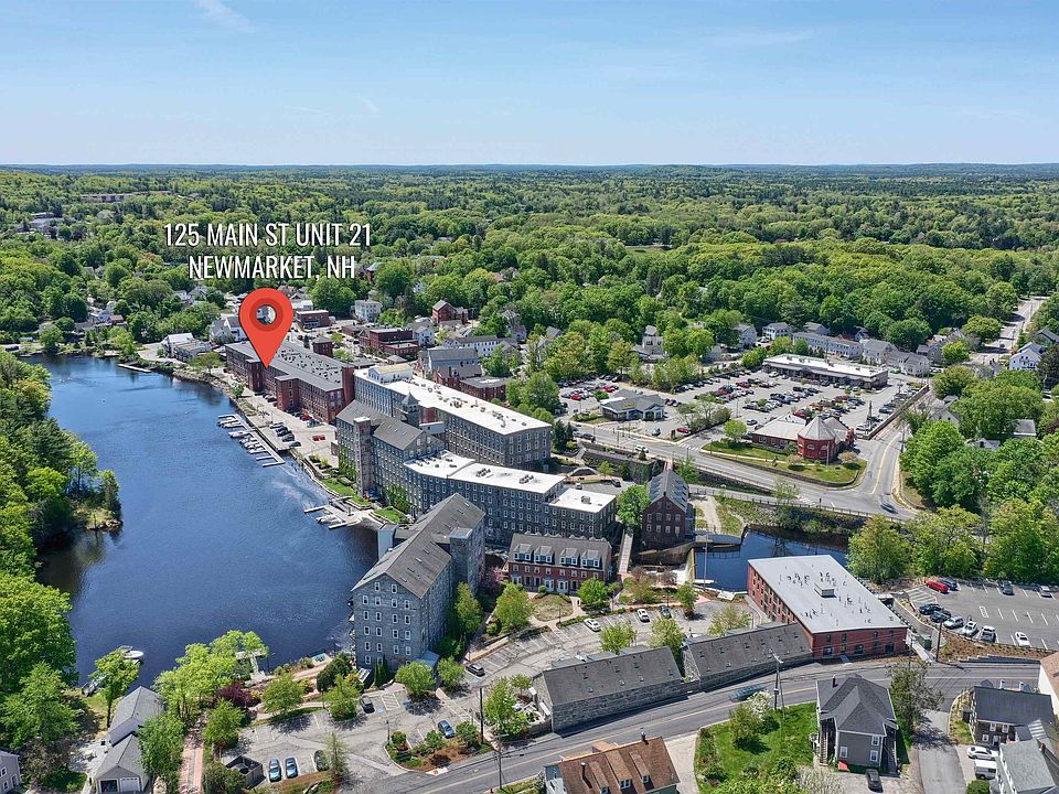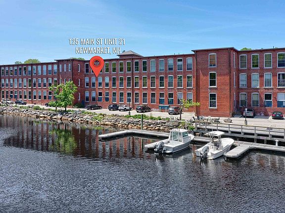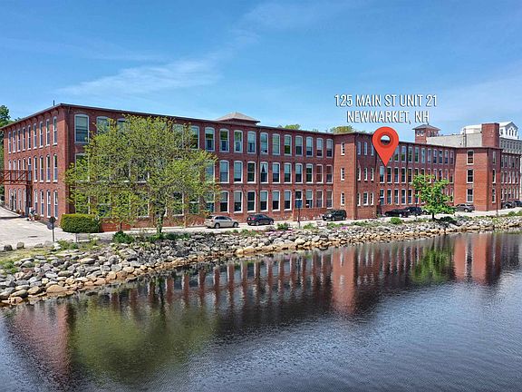 This pristine Rivermoor Landing Condo faces the WATERFRONT in picturesque historic mill building features spectacular views of the Lamprey River. This condo has been tastefully renovated and is ready to be your home. Updated kitchen includes all new tall cabinets, under and above cabinet LED lighting, Dekton countertops, and stainless steel appliances, ready for entertaining your family & friends. Beautiful tongue and groove hardwood floors lead you into the spacious living area with impressive exposed brick, wood beams, and other historic details. Expansive open living room features oversized windows with stunning views of Lamprey River. The striking first-floor primary bedroom is a spa-like retreat with double closet, renovated ensuite bathroom featuring radiant heat tile floor, walk-in custom tile double shower, and sliding barn door. There is a second spacious loft bedroom and renovated second bath with walk-in tile shower and custom vanity. This impressive home offers many desirable features like soaring 14’ ceilings, oversized windows, newer mini splits, newer washer and dryer, updated 100 amp electric, new lighting fixtures, freshly painted walls, and new carpet in the loft bedroom. Includes rare in-unit storage, one covered parking spot and additional reserved parking space. Enjoy riverside living in the heart of desirable downtown Newmarket, a short walk to boat launch, parks, restaurants, and shops. Minutes to Seacoast beaches, Portsmouth and highways for commuting.