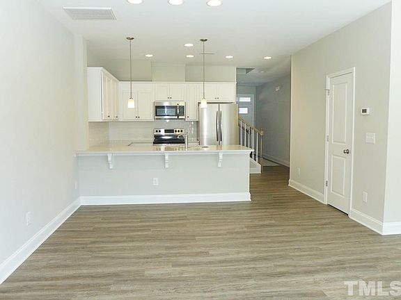 3-story. Open living, dining, & kitchen on main, with hardwood style vinyl plank. Kitchen; appliances, breakfast bar, quartz countertops, white cabinets, subway style tile backsplash. Exit from living to back of home & greenway. 2 bedrooms & loft on 2nd; carpet. Split bedroom plan. Master bedroom with walk-in closet, dual sink vanity, tile surround shower, tile floors. 2nd Bath on 2nd; tub-shower, tile flooring. 3rd bedroom; carpet, and bath; tile on 3rd. Attached 1 car garage, driveway parking.