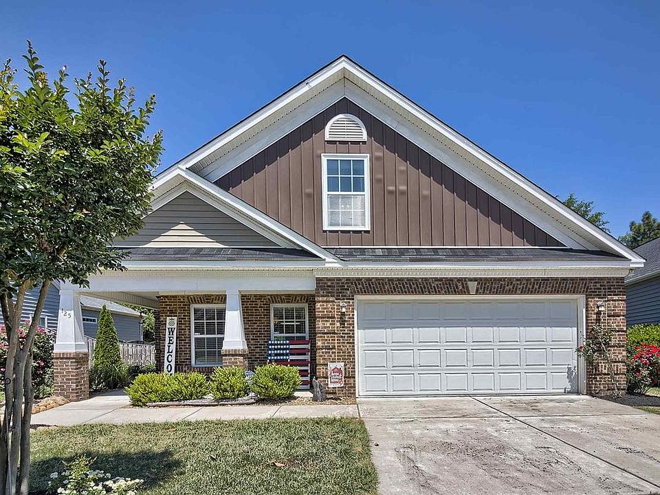 This beautiful home in South Brook has it all! The community is literally located one minute from interstate access, has a huge community pool, and a gorgeous entry. The home itself is located on a super friendly cul de sac, where everyone helps each other. It has a partial brick front with great detail, and a semi wrap around front porch. The landscaping is fantastic. If you like to be in your back yard, it is fully fenced, you have a covered porch and a paver area in which to grill! Entering the home you will appreciate the open concept. A large faily room, with full view from the kitchen, a formal dining area that could easily be used for other purposes if needed. There is abundant cabinetry in the kitchen, new granite and flooring, and an eat in area. The laundry room is large and also has shelves for storage. The owners bedrooms is great sized, and the owners bath has double sinks, garden tub, and a good sized walk in shower. The is also a second bedroom downstairs! Upstairs you will find a spacious loft and two really large secondary bedrooms. There is also a full bath. This home is amazing! Call to see it today!