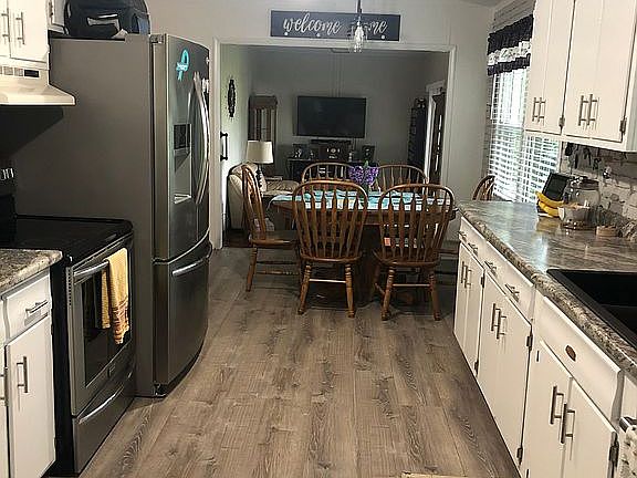 Lockbox on front railing. This nice 3 bedroom, 2 bath ranch has had many updates and improvements in the past year - fresh paint, new kitchen and dining area flooring, new counter tops and cabinet hardware, both bathrooms fully remodeled. Several new windows include a 10 year warranty. New yard shed included. Outdoor firepit. Appliances included. Exemptions: Shelving in shed and garage. All measurements are approximate.