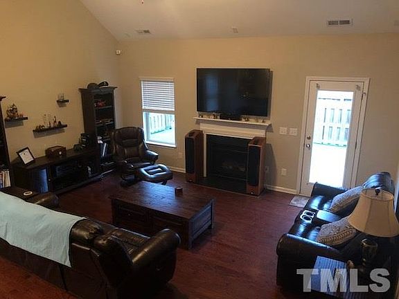 Superb 4 BR home with 1st fl Master. Close proximity to I40, US 70 & Hwy 42. Hardwoods in foyer, Dr, Kit & LR. Synthetic grass in fenced backyard. Large Island Kit has granite counters, tile back splash, eat at bar, pantry & smooth top range. Master features an octagonal tray ceiling, garden tub, sep shower, dbl vanity, WIC with custom built-ins & the adjacent laundry rm. Vaulted LR has gas log FP & surround sound. DR has a coffered ceiling & chair rail. 9 ft smooth ceilings. Sec system. Covered ft porch.