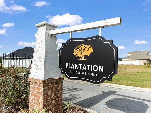 This 4-bedroom, 2.5 bath craftsman style home with bonus sunroom is located in the gated community of Plantation at College Point in Lynn Haven on a premium corner lot. The home includes many upgrades, such as 11' double tray ceilings in the living room, 10' tray ceilings in the primary bedroom, and crown molding throughout living areas. The gourmet, open-concept kitchen is perfect for entertaining and features stainless steel appliances, custom backsplash, granite countertops, large kitchen island, recessed lighting, and an oversized corner pantry. The primary suite boasts a spacious bathroom with granite countertops, double vanities, tiled shower with seat, garden tub, private water closet, and large walk-in closet. The split floor plan includes three other spacious bedrooms that share a full bath with double vanities on the opposite side of the home, offering privacy and space for your family and guests. Enclosed sunroom at the back of the home provides additional space for an office, playroom, or extra living area. The large screened-in covered patio is the perfect spot to relax and enjoy your favorite beverage while grilling out. The expansive, well-maintained yard provides ample room for a pool and more.