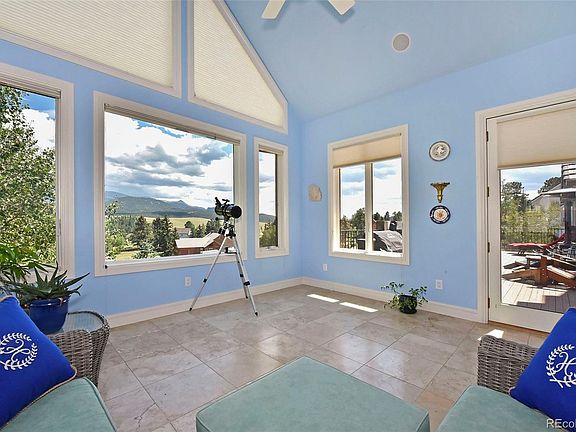 Exquisite Pikes Peak Views! Beautiful 5 bed 5 bath mountain home in sought after Divide Colorado, Meadow Park neighborhood! Located on over 1/2 acre, with beautiful Pines and Aspens. Million dollar views of Pikes Peak and the valley below, from 18 large rear picture windows. Endless days on the rear deck, watching the constantly changing views of Pikes Peak, while enjoying the wildlife and neighborhood deer heard. The main floor features a large gourmet kitchen with slab granite, KraftMaid cabinetry, Viking 6 burner gas stove/oven with pot filler, and additional Dacor oven and microwave, warming drawer, large island prep sink, and GE Monogram counter depth refrigerator. The large laundry room provides plenty of storage. From the entry, the dining room flows into the large living room, which features a rock wood burning fireplace and french doors to the deck. The open concept breakfast area and kitchen add for a seamless entertainment space, bordering the sunroom with 20ft cathedral ceilings, an added bonus for sunrise coffee. The main floor bedroom suite has a a lovely bathroom ensuite, including walk-in glass enclosed shower with 2 shower heads, linen closet, and large walk-in closet. the second floor includes a cozy den/office with skylights, a full bath, 2 bedrooms, and 2 large hall closets for linen and storage. The 1595 sq ft basement was finished by the owner, including knotty alder doors, wood floors, 2 large bedrooms, and a full bath with a copper clawfoot tub, custom craftsmen cabinets with copper sink, beautiful travertine wall and floor tile, and large linen closet, 1/2 bath. A second half bath and wine cellar are near the bar area (wired and plumbed for kitchenette), and a dining area open to the large rec room. The Solar Ring Cameras stay with the home. Gorgeous home with incredible views!