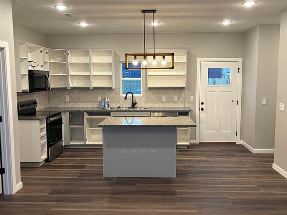 Granite countertopsCustom cabinetsOpen concept designVinyl plank flooring