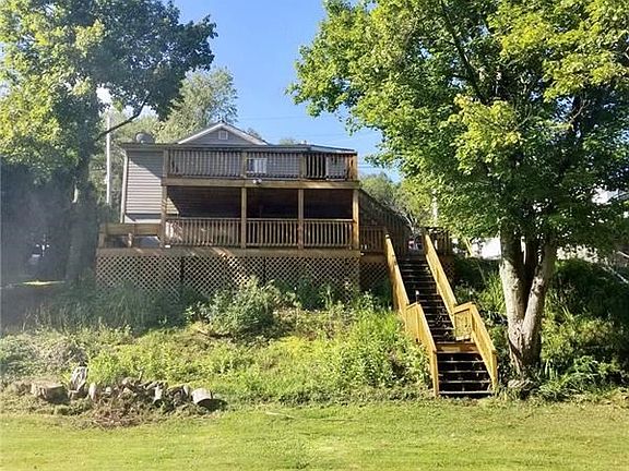 Welcome to this Beautiful Home with a double back deck on a gorgeous treed lot with a creek, chicken coop, and shed for country style secluded living. From the heated floor front entry way, you are lead into an over sized living room which flows into the warm, substantial eat in kitchen which features a nicely sized island. Convenient Double sinks, ceramic tile shower and lots of storage await you in the main bath. Second entry room off of kitchen leads to back deck. Lower level has a separate room that can be finished to fill any possible need.