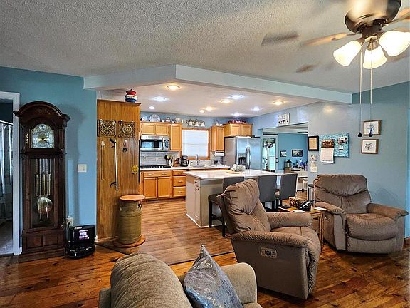 - Sunken Living Room, Kitchen Island, Custom Cabinetry