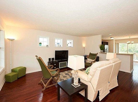 So much to love in this Hunters Chase beauty! The lovely front porch welcomes you into a great open living area complete with hardwood floors. Offering great light, the first floor provides an eat-in kitchen, dining area and living room, laundry room and half bath. The second floor boasts a beautiful master bedroom with walk-in closet and four piece master bathroom with double vanity, two additional bedrooms and a second full bath. Plenty of additional finished living space and a third full bathroom make this walk-out basement a great addition. You'll enjoy the neighborhood from the deck off of the kitchen or at one of the two lovely parks. Tenant responsible for all utilities Minimum of one year lease required Non destructive pets are allowed.