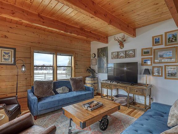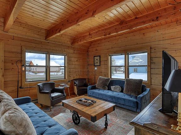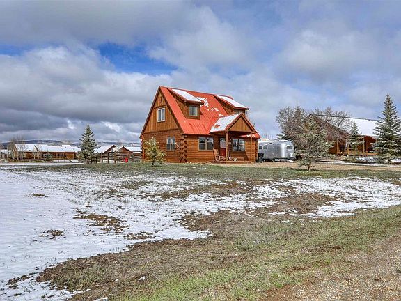 On the golf course! Nicely done D log cabin with beautiful wood ceilings and exposed beams Kitchen is sweet! Painted cabinets and really nice tile floors. Nice gas fireplace in corner. Downstairs bath has a cllaw foot tub and really nice tile floorsFenced yard for your pets. A garage can be added as the lot is .42 acres. New deck with a hot tub in place for your enjoyment. Mountain views from primary bedroom and back deck. There is an airstream on the property that can be bought for 20K 1959 Airstream model Overlander. All electric and plugs in easily to the house. It is not plumbed! With the exception of any art that says Pagosa Springs, the art does not convey, also bronze statue and deer mount in fireplace area