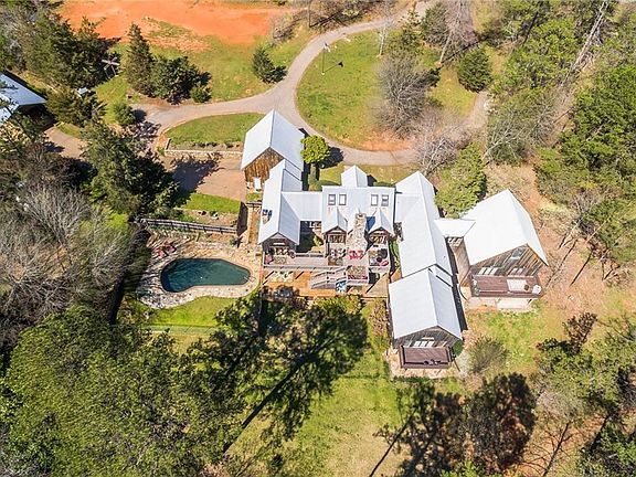 The Gated Community of Mill Creek Farm comprises several estate size homes. This 10.20 acre estate is the ideal setting for those searching for privacy and unrestricted living yet the benefits of Clemson and Lake Hartwell just minutes away. Bring your horses, 4-wheelers, fishing poles, RV, and enthusiasm for outdoor living. The Custom Designed 6230 SF home exudes warmth and character, built from local treated pine that keeps its beauty with little to no maintenance. Upon entering the massive great room with post and beam craftsmanship & wood burning stone fireplace towering 20' above. Glass doors flank fireplace opening to views of private stocked pond, nature, & over 50 ft. of decking that spans the back of the living section of the home. Great room is open to the dining room w/ views to front & rear of home. Pocket doors provide easy access to the kitchen, a chef's dream with 10' granite island, Jenn-Aire cook top & ample storage and seating. The bright breakfast area & den also has a stone fire place and opens to the grilling deck w/ views of the in-ground pool. A 24' x 26' guest room w/ en-suite bath & walk-in closet is located on this end of home as well. A bedroom is located just off great room, currently a haven for grandchild. Invite friends over, the "guest wing" includes 2 more bedrooms & baths with walk-in closets and exterior access to a another deck that overlooks the pond. One bedroom has a spiral stairway to a 14' x 27' loft/study space & the walkout basement of this wing is a 27' x 28' family/game room with glass doors leading to patio. Located off another wing is a very private master suite w/ his & hers bathrooms, walk-in closets, & access to another private deck. Her bath has double vanity w/ custom Paua Shells basins from New Zealand & His bath, made of redwood has a walk-in shower & cedar closet. Bedroom area has custom built-in cabinetry that spans 21' including entertainment center, bookcases, drawers & hanging closets. Accessed from the master is a wood paneled room currently used as gym, but could easily convert to home office. With over 2200 sq. ft. of outdoor living space that includes in-ground pool, a large hot tub & built-in seating. Pool surround, walkways, & patios are made of field stone from the property. The 10+ acre property has three outbuildings & guest or care taker's cottage. The 2 bedroom/1 bath cottage is 1400 sq ft w/ nice kitchen & dining area, large living room w/ a wood burning fireplace, a screened porch, and covered parking. Multi-use barn has 2 horse stalls, wash rack, feed room & tack room. There are 2 open stalls and a dog kennel, also an 100' x 200' level grass arena ready for footing & very nice pasture land. One large storage building has three covered bays for boats and RV storage & behind the guest cottage is covered storage w/ 5 bays on a cement pad. 2 of the outbuildings have electricity. Beautiful new metal roof installed in November 2017! The pool is 6.5' at the deep end and was refinished with Marcite in 2013. New Pump in 2017. 4 HVAC Systems less than 10 Yrs Old. Septic Tank Pumped 4/2017. New Deck off Living Room and Kitchen 2018. Many windows throughout home have been replaced. Two Bathrooms remodeled 2018. Currently being done...new floor in guest bedroom & hall, fresh paint in several rooms, opening doorways to make better flow, and updating bar in living room. This is a rare opportunity that must be seen to be appreciated. Located just 3 miles from Clemson and zoned for much desired Clemson Elementary School, Edwards Middle, and Daniel HS.
