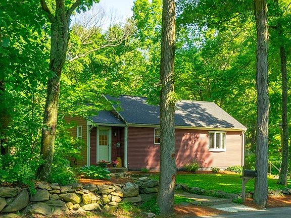 OPEN HOUSE CANCELLED DUE TO RESPONSE. Nestled in the forest on a winding New England country road, this lovely home offers a private retreat on a huge 1+ acre wooded lot. The yard, with established plantings, is wonderful for entertaining guests who can admire your property from the expansive 16x24 foot deck (new decking in 2015). Inside, the eat-in kitchen boasts ample cabinets for storage. In fact, there are oversized closets and other nooks for storage conveniently located throughout the home. Each bedroom has ITS OWN EN-SUITE FULL BATHROOM! One bedroom has brand new carpet while the other has classic hardwood. Combine this with first-floor laundry, 2015 roof, family room with wood stove on the lower level, electrical service in the shed, and you have an amazing home at an affordable price! Historic Hopedale is close to shopping and restaurants and is minutes from I-495 and the Forge Park MBTA station. Showings start immediately. Visit the Open House Sun 6/10 from 12-2pm.
