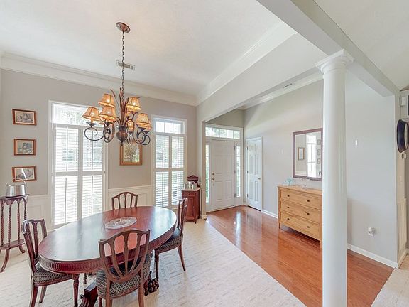 Gorgeous curb appeal with upgraded flower bed concrete curbing making grass & flower bed maintenance easier! Ready for a quick move! Lots of fresh interior paint! Foyer with wood floors! Dining room with wainscoting! Living room with gas fireplace, vaulted ceiling & fabulous built in book case (can easily be removed if wish)! Kitchen with ceramic tile backsplash, refrigerator staying, built in microwave, pantry, desk area, breakfast bar & breakfast room overlooking fabulous backyard! Split bedroom plan! Owners suite with tray ceiling, bath with double sink vanity, shower & walk in closet! Spacious spare bedrooms with ceiling fans! Upgraded ceramic tile in spare bath! Upstairs 4th bedroom with own thermostat! Laundry area with washer dryer staying! Some upgraded plantation shutters! Covered back porch with ceiling fan! Privacy fenced backyard! 2 car side entry garage!