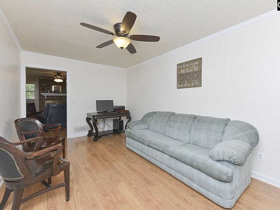 FANTASTIC 3 BRM 2 BATH ALL BRICK HOME IN HIGHLY SOUGH-AFTER LEXINGTON ONE SCHOOL DISTRICT. This home welcomes you into a living area that leads into a cozy great room that opens up to the kitchen. The great room has a wood burning fireplace and the kitchen offers custom built cabinets with stainless steel appliances, plenty of space for cooking and entertaining with an eat in area. There is crown molding and laminate flooring throughout the entire house. The master has a full bathroom and there are two additional bedrooms that share a full hall bath. Backyard features a cement patio perfect for grilling and entertaining complete with a storage shed equipped with power. A 12-month home warranty is also included with this home so come see it today and make it yours.