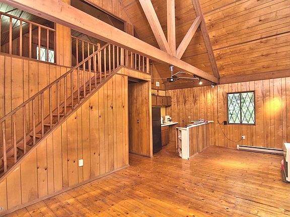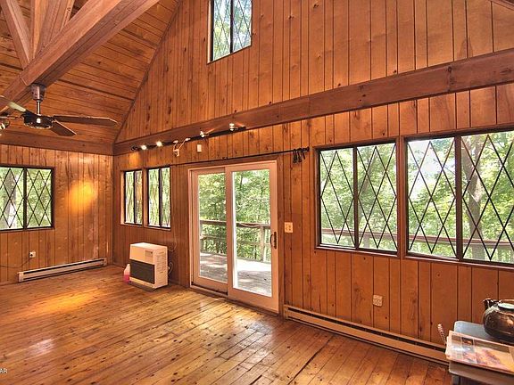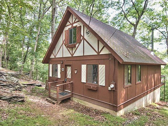 Beautiful chalet country home in Masthope Mountain Community. This charming home is nestled into the hill side providing beautiful wooded views and privacy. Offering 3BD, 1BA, large loft, open floor plan, rear deck and full unfinished basement. This property is 2.04 Acres combined and is 3 separate deeded lots, the buyer has the option to purchase house without purchasing the adjoining lots, the lot to the left is non-buildable and the double lot to the right gives new owners the option for installing a driveway, building a garage or future expansion. A lot of potential to finish the basement which has rough plumbing for a future bathroom. Come see a Masthope original mountain chalet.