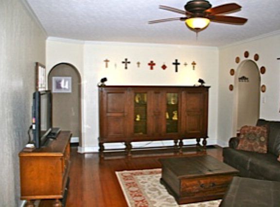 Unique home in historic area. Well built brick and stone house. 4 or 5 bedrooms with 3 full baths. Formal dining area with lots of natural light. Updated baths and kitchen. Private patio area and large lot. Hardwood floors are original. Ceramic tile in kitchen and baths. House is well maintained and ready to move in.