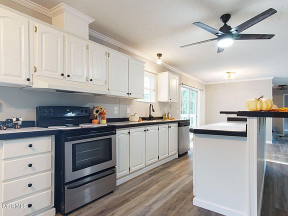 BUYER FINANCING FELL THROUGH! DON'T MISS this really nice property as it may just be THE ONE YOU'VE BEEN WAITING FOR!! This NEWLY RENOVATED, spacious 3-bedroom 2 bath HOME resides on a quiet and semi-private cul-de-sac in Trent Creek. Renovations include the following: Fresh paint throughout; All new Mohawk SOLIDTECH Luxury Vinyl Flooring throughout; Updated Stainless Steel Appliances; Updated Kitchen Cabinets and countertops; Both Bathrooms have been updated with Gorgeous ALLEN & ROTH Vanities and include new mirrors, fixtures and accessories; Harbor Breeze Flanagan II 52-in Matte Black Color-changing indoor ceiling fans with remotes; Updated Allen & Roth Lighting fixtures throughout; New gutters; an updated partially covered extra large two level deck overlooking the huge, semi-private backyard...and MORE. This home features a split floor plan with the master bedroom suite extending into another room (sitting area? Office?) before entering the master bath with separate vanities, a large tub and separate shower. The closet opens on one side of the room and extends all the way to the other side with another exit. On the other side of the home, you'll find two good-sized bedrooms with large closets and a fully updated Bath. Upon entering the home you'll enter the large living room and will be able to look through the dining room and out the back sliding doors onto the deck. The updated stainless-steel Refrigerator, Stove/Oven and Dishwasher CONVEY with the home, as do the Washer and Dryer. A New Roof was installed after Hurricane Florence; the HVAC was replaced in 2016/2017. This home is minutes from Downtown New Bern, the shopping district, medical facilities, and the largest Harris Teeter in North America. It's just waiting for your personal touch to make it YOUR OWN! SELLER offering $5,000 use as you choose for full price offer.