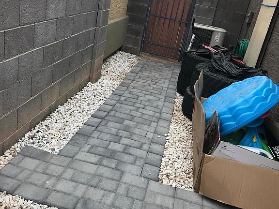 • Landscaping: Gravel/Stone Front, Synthetic Grass Back