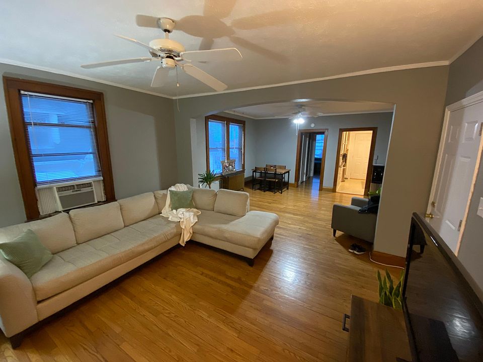 Large 1 bed on top floor of great building near 31st Ave and Dodge. Plenty of off street parking . Awesome three season porch. Apartment is not furnished... Shown with previous tenant's furniture and belongings for scale. Landlord pays water, sewer. Tenant pays electric, gas and $35/ mo flat fee for heat.