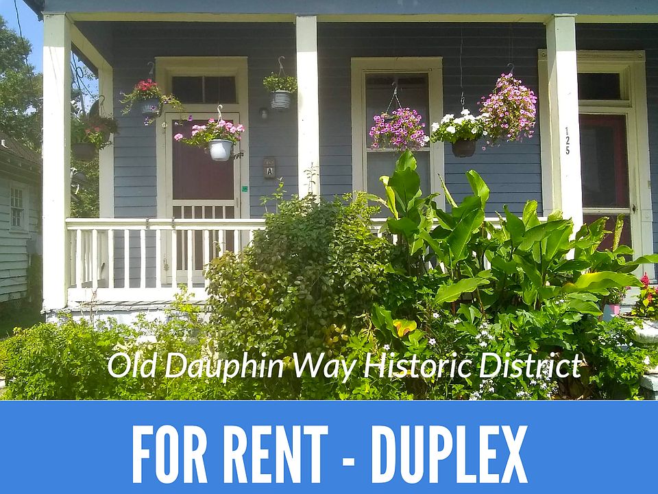 125 A North Ann St is a duplex in the Dauphin Way Historic District. Apartment has a front porch, living room, kitchen, 1 bedroom, 1 bath and spare room. High ceilings and off street parking. Convenient to downtown. To complete an application for this property, go to 1305 Springhill Ave., Blankenships Universal Supply, Monday through Saturday, 7:30 am to 5 pm. Utilities not included. No smoking. Lease is 12 months.