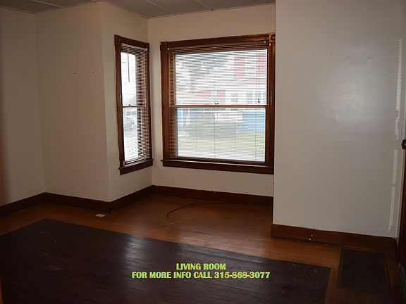 1 BEDROOM 1st FLOOR APARTMENT. LIGHTS, WATER, SEWER, STOVE AND REFRIGERATOR ARE INCLUDED. HEAT IS NOT INCLUDED SECURITY DEPOSIT REQUIRED !! NO PETS!! NO ALL NIGHT PARTIES. PARKING FOR ONE CAR. GREAT FOR A SINGLE PERSON OR A JUST MARRIED. CALL 315-868-3077 YOU MUST LEAVE MESSAGE I WILL CALL YOU BACK PLEASE NO SALESMEN I understand that the apartment to be leased no pets of any kind are allowed I will be required to sign a one-year lease agreement. For more info call 315-868-3077