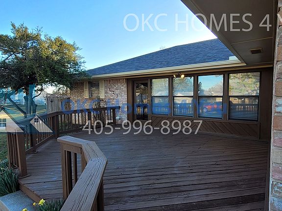 Welcome to this spacious 4-bedroom, 3-bathroom home conveniently located near Tinker AFB in Midwest City, OK. This home features a well-equipped kitchen with electric range, refrigerator, dishwasher, and disposal. The open floor plan includes a den with fireplace, additional living area, and plenty of storage with built-in bookcases and walk-in closets. Enjoy the comfort of zoned heat and air conditioning, updated flooring, and ceiling fans throughout. The master bathroom boasts double sinks, while the outside deck provides a perfect spot for outdoor relaxation. With an inside utility room, breakfast bar, and lots of counter space and kitchen cabinets, this home offers both convenience and comfort for its residents. Don't miss out on the opportunity to make this house your home! 6 month lease $1600 18 Month lease $1750 Security deposit - $1,600 This is a no smoking, no pet property.