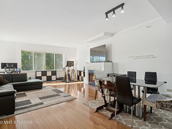 What a terrific opportunity to own a spacious condo in highly-sought-after Turnberry in Buffalo Grove!! This fabulous two bedroom, two full bath, second floor condo is lovely unit in this upscale building! Spacious living room and dining room with hardwood floors, lovely fireplace (sold as-is, hasn't been used) open floor plan, large eating area and plenty of room for entertaining. Light-and-bright kitchen boasts tall cherry cabinets, granite countertops, NEW fridge....WOW! The lucky buyer will enjoy a primary bedroom suite with a large walk-in-closet with built-in-organizer plus a huge bathroom with double vanity and separate shower and bathtub. For your added convenience, there is in-unit laundry with NEW full-size washer/dryer! Newer Energy Efficient AC unit and condenser 2018.. Indoor parking space(#5) has been approved for EV installation per Association and storage unit (directly behind parking spot)in the HEATED garage plus an outdoor parking spot and an abundance of visitor parking. *Assessment includes EVERYTHING except electric* Ideal location near shopping, restaurants, fitness center, schools, parks, Buffalo Creek walking paths, and much more! **Award-winning District 102 and Stevenson High School!**