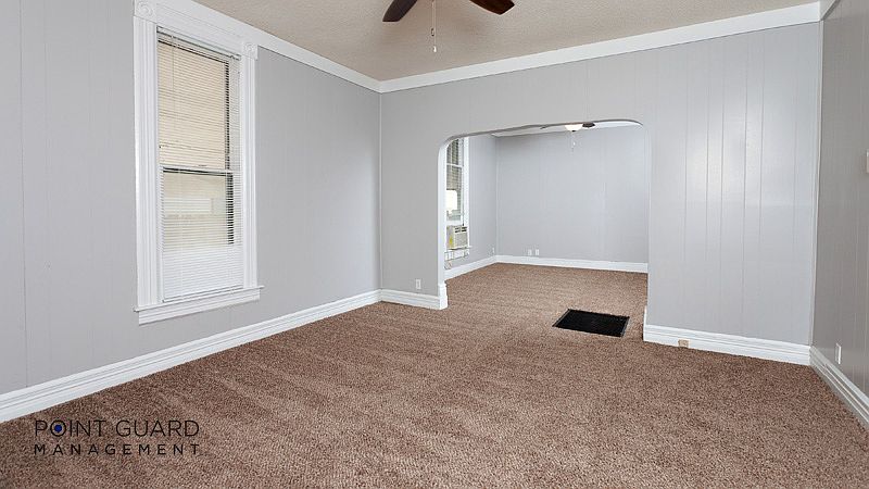 This is a cozy two bedroom one bath house by East High. It has high ceilings and open spaces for you to see throughout the house. There is also a fenced backyard! Tenant pays all bills including lawn and trash.