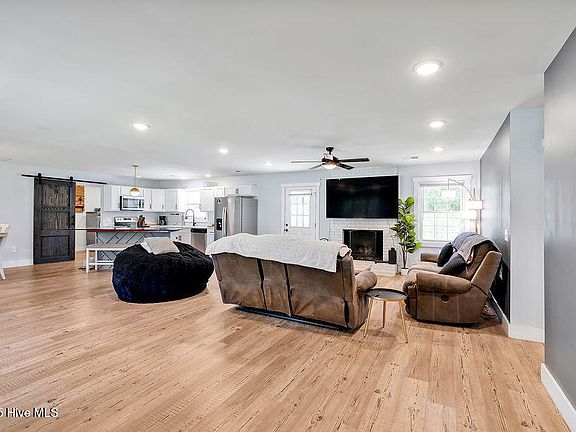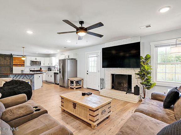 This beautifully updated 3 bed 2 full bath one level brick home in Millbrook was renovated in 2019. Check out what's been done - heating and air, water heater, cabinets and granite counters in the kitchen, all stainless-steel appliances, both bathrooms, plus shiplap and barn door finishes. The bright, open floor plan and cozy wood burning fireplace in the living area add to the charm. The private, fenced back yard is perfect for tossing frisbee with your pup or relaxing on the back patio that runs the length of the home. This rare half an acre lot stretches considerably past the fence line, has mature trees and it's located in a quiet, established neighborhood, perfect for strolling or biking. Use the two-car garage for your vehicles, bikes, and beach toys and use the detached storage building for your lawn and garden equipment. Area beaches are minutes away to the north and to the south.