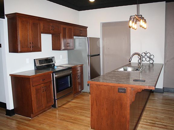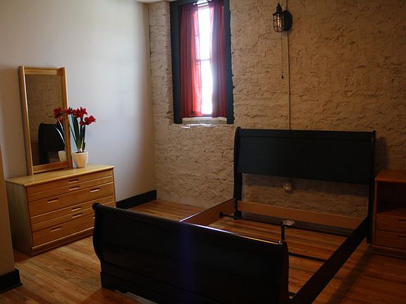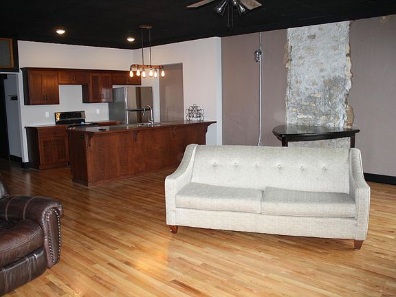 Loft A ~ Features beautiful hardwood floors, custom cabinets, sliding doors, historic tin ceiling, stone and brick walls 1 bedroom, 1 bath with walk in closet and new kitchen appliances, walk in pantry, TVs. Shared laundry room, electric/gas/water and trash utilities are included and 1 parking space in attached garage. Furnished or unfurnished, $1200.00 per month with $1200.00 deposit. The building has keylock exterior doors and a keycode elevator.