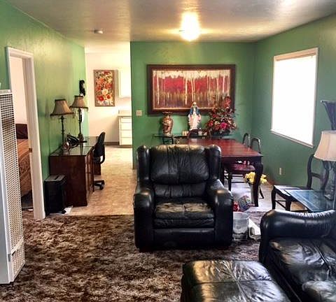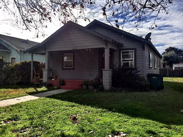 This Little Home has a few items to brag about! Cute front porch is the beginning then enter and notice how clean, spacious and well put together it is! The living room is large and includes a dining area, the kitchen is upgraded, good cabinet space and has an adjoining hallway that could have many uses. The two bedrooms are very roomy, each has a nice enclave area, one with a walk in closet & the other a large closet space. The bath includes a shower/tub, nice & tidy!. A interior laundry and storage space to boot! The backyard is so big, you could go crazy with your landscaping ideas.
