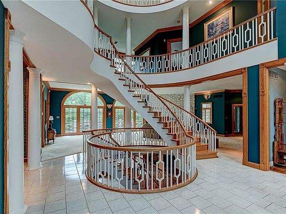 You have to see this home in person to truly appreciate this one of kind, custom built brick home. They don't build them like this anymore. From the tree lined driveway to the hand cut custom spiral staircase. This Excelsior Springs Mansion is a gem. The entry is truly breathtaking. The kitchen, hearth room, wet bar combination is ideal for entertaining. The huge main floor master suite features a walk-in shower, large double vanity area, and jetted tub. The main floor provides an open feel with easy access to the living room, formal dining room and sitting room. The main floor office features built in book shelves and a balcony view from the second level. The finished walkout basement provides a family room, entertainment/gaming area as well as another room that could be a second office, study or home theatre. This home just has too many features to mention.