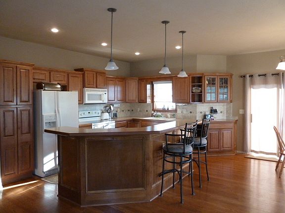 You'll love the curb appeal and the incredible location of this fantastic five bedroom three bath home. Located in the Andover school district and just across the street from the Shoal Creek neighborhood pool, this home features a great open floor plan including a large living room with gas fireplace, a very open kitchen and dining area with hardwood floors, a center island and eating bar, a pantry and lots of kitchen cabinets and countertop space. The main floor also includes a nice size master suite and a second bedroom, while the upper level includes a very large bedroom or bonus room area. The mid-level walkout basement includes a great family room and game room area with a second gas fireplace and a wet bar, two additional bedrooms, a third bath and a generous storage area. New carpet and new paint throughout much of the home. The home includes a great fenced backyard with a partially covered deck and offers great views of the neighborhood pool and lake area. Conveniently located just a short drive from some of east Wichita's best shopping and dining areas.