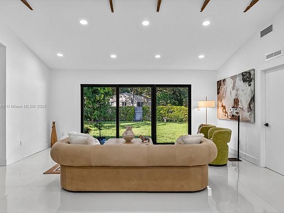 Experience modern living in this beautifully updated 3-bedroom, 3.5-bath Miami Shores home. Thoughtfully redesigned with stylish details throughout, it features an inviting open floor plan with a seamless flow between the living, dining, and kitchen areas. The chef's kitchen boasts Quartz countertops, La Belle Antique Blue backsplash, and custom white cabinetry with top-quality appliances. The converted garage provides two additional rooms, ideal for an office, gym, or guest space. Step outside to a private backyard retreat with a large patio, BBQ station, and bar, perfect for entertaining or adding a pool. Equipped with a Tesla EV charger, new roof, and impact windows. Move-in ready and perfectly located in one of Miami's most desirable neighborhoods.