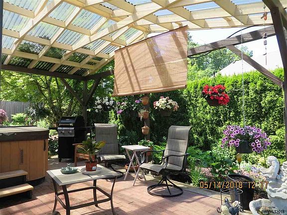Accepted Offer with Contingencies. Light & Bright single level home in desirable Sublimity. Private oasis backyard w/covered patio & hot tub. French doors to living rm, slider to patio. Open floor plan. Heat pump, pellet stove. Vinyl windows, beautiful hardwood floors, skylights. 10x5 storage room addition. New roof. Great kitchen w/island.