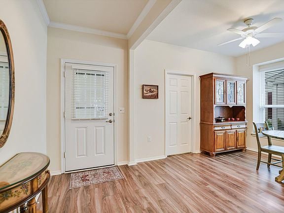 Charming One-Story Cottage in Sun City – Central Texas’ Premier Adult 50+ Community! This beautifully maintained home offers an inviting open floor plan with high ceilings and plenty of natural light. Enjoy peaceful outdoor living on the screened-in porch, overlooking lush, park-like common areas. Spacious rooms and ample storage throughout provide both comfort and convenience. Gorgeous hardwood floors enhance the home’s appeal. The primary bathroom is designed with accessibility in mind, featuring a walk-in shower with built-in handrails. Plus, the HOA takes care of all yard maintenance for easy living. Truly the best value in Sun City!