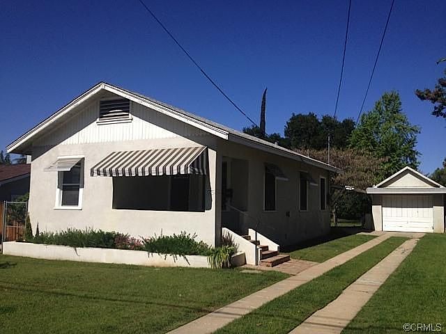 Voila! Single Story, Standard sale in South Redlands! Close to Olive Market and town. Cute living/dining area with built-in buffet. Family room could be a third bedroom. Check out the 1940's linoleum floor cool design in the family room. New carpet, new paint. This home has a very large yard and is zoned R-2, so the possibility of building another unit exits, depending upon City regulations. There is a very large workshop and a detached garage too.