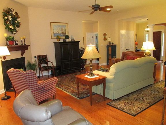 Beautiful brick cul de sac home features hardwood floors, open kitchen/great room floor plan, spacious bedrooms and baths. Master bath is huge with separate rain shower and walk-in closet. The kitchen is outfitted with custom cabinets, Corian counters, center island and double wall ovens. The large FROG is the perfect space while the sun room with 3 skylights can be enjoyed year round. The oversized garage accommodates the golf cart, distillation unit, water softener and storage. In addition, there is a whole house generator, irrig. system w well and ceiling fans throughout.