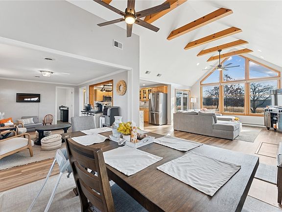 Welcome to Your Private Oasis! Set on a 1-acre lot surrounded by farmland, this updated ranch offers a perfect blend of modern comfort and outdoor tranquility. This home includes a 2-car garage and a 3-stall barn. Inside, you’ll find luxury vinyl floors throughout, a vaulted, wood-beamed living room with a stunning wall of windows, and an open flow to the formal dining room and updated kitchen with granite countertops, a breakfast bar, and stainless-steel appliances. The den offers custom shelving, perfect for a home office or library. The main suite boasts vaulted tongue-and-groove ceilings, a skylight, and glass doors leading to a Trex deck. The main bath features a double vanity and spa like finishes. The finished lower level includes a bedroom, spacious game room with a pellet stove that can heat the whole house, and two large storage rooms. Outside, the fully fenced, level acre is beautifully landscaped—ideal for enjoying the outdoors. Don’t miss this one-of-a-kind property!