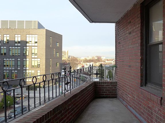 Ocean Parkway at Caton Avenue: HUGE 1 bed with private balcony off the living room on the 4th floor of a pre-war elevator building 2 blocks from Prospect Park. The apartment has a large entrance foyer with 2 huge closets and built-in shelves, that opens to the 13 x 20 living room with 3 windows facing North. There is a 16' long private balcony with views to the North and East. There is a nice sized windowed eat-in kitchen with stainless appliances and wood-laminate cabinets and a large tiled dining area. The 16 x 16 corner bedroom has a 4th closet and South and West exposures for great light, and there is a large full bathroom with linen closet. The building has a great live-in super and laundry room, and it's 2 blocks to Ft, Hamilton Parkway and 2 blocks to beautiful Prospect Park, horseback riding and tennis courts. The apartment is rent stabilized, up to 2 cats ok, good credit and income a must. 1 month rent, 1 month security and 12% broker's fee due at signing.