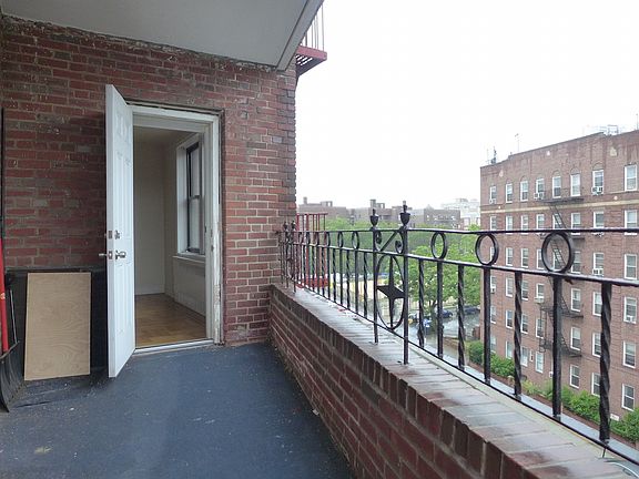 Ocean Parkway at Caton Avenue: HUGE Jr. 4 with Balcony off the living room on the 5th floor of a pre-war elevator building 2 blocks from Prospect Park. The apartment has a large entrance foyer with 2 huge closets and built-in shelves, that opens to the 13 x 20 living room with 3 windows facing North. There is a 16' long private balcony with views to the North and East. There is a nice sized eat-in kitchen with new (once replaced) white appliances and cabinets and a large tiled dining area. The 16 x 16 corner bedroom has a 4th closet and South and West exposures for great light, and there is a large full bathroom with linen closet. The building has a great live-in super and laundry room, and it's 2 blocks to Ft, Hamilton Parkway and 2 blocks to beautiful Prospect Park, horseback riding and tennis courts. The apartment is rent stabilized, up to 2 cats ok, good credit and income a must. 1 month rent, 1 month security and a broker's fee due at signing. *THE ELEVATORS IN THE BUILDING ARE GETTING REPLACED STARTING 6/22 AND WILL BE OUT OF SERVICE FOR 10 WEEKS* so you should probably plan on moving in well before that. The building has 2 elevators, so one will remain open but involves climbing a set of steps to the roof, crossing over, and coming down 2 flights on the other side.